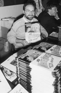 Patrice Sanahujas en dédicace à l'occasion de la sortie de l'album "L'Aiguille de Feu". Au Havre à gauche, et au festival de Colmar à droite. |