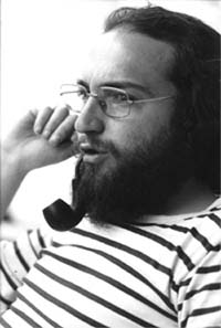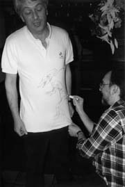 Patrice Sanahujas devant ses illustrations originales exposées à Charleroi à l'occasion du festival de la BD (photos Jean-Pierre DECNOP). |